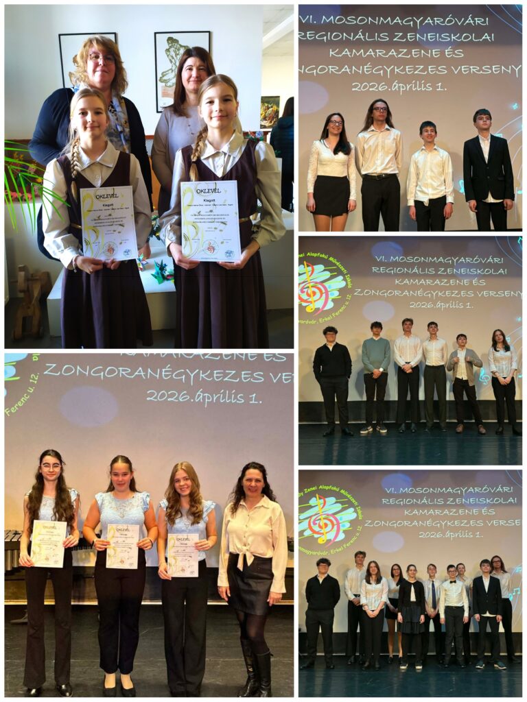 2026. Április 1-én került megrendezésre a VI. Mosonmagyaróvári Regionális Zeneiskolai Kamarazene és Zongoranégykezes Verseny, melyen iskolánkból szép számmal indultak kamara és négykezes csoportok. Nagyon szép eredmények születtek: